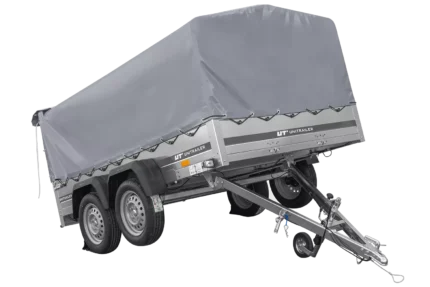 264×150 UNITRAILER GARDEN 265/2 KIPP Zweiachsanhänger mit H-1100-Fahrgestell und grauer Plane