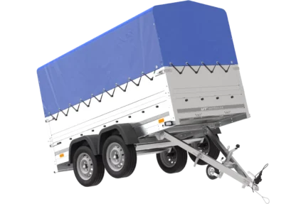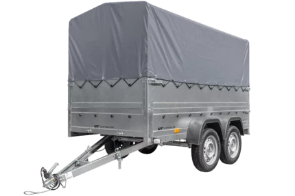 UNITRAILER GARDEN TRAILER 264/2 KIPP 2-Achs-PKW-Anhänger mit Stützrad, zusätzlichen Bordwänden, H-800-Fahrgestell und grauer Plane