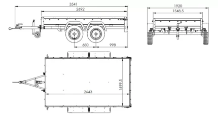 Modell Gartenanhänger 265/2 KIPP zulässiges Gesamtgewicht max. 750 kg Maximale Tragfähigkeit 548 kg Laderaumlänge 2643 mm Ladeflächenbreite 1499 mm Anzahl der Achsen 2