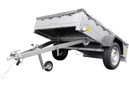 Verzinkter Anhänger 230 x 125 cm Gartenanhänger 230 KIPP [mit Stützrad, Flachplane und Planenstützstangen]