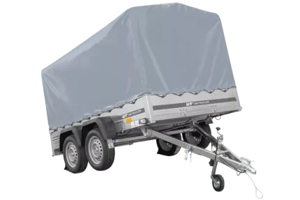 264×150 UNITRAILER GARDEN 265/2 KIPP Zweiachsanhänger mit H-1100-Fahrgestell und grauer Plane