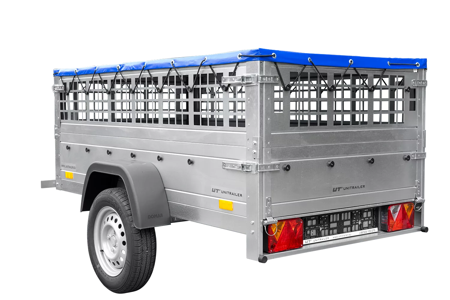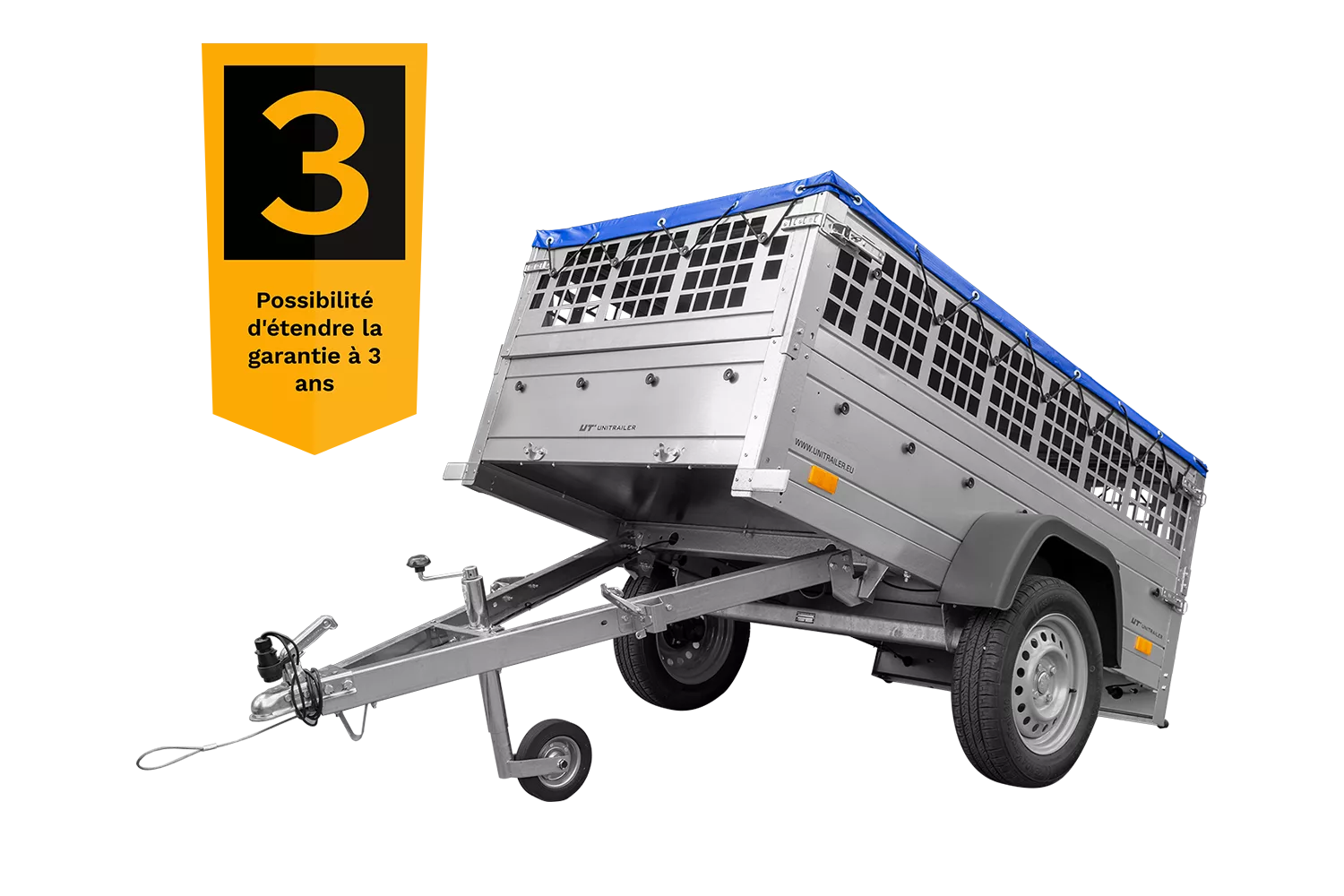 Remorque grillagée Garden Trailer 200 KIPP Grande remorque basculante avec bâche plate bleue, ridelles grillagées et roue jockey du modèle Garden Trailer 200 KIPP. Grâce à la grande surface de transport de 200×106 cm, la remorque vous permettra de transporter de lourdes charges ou d’objets de grandes dimensions qui ne seraient normalement pas transportables dans votre voiture . En outre, le PTAC maximal de 750 kg permet à chaque conducteur de fixer la remorque à la boule. La bâche et les rehausses de ridelles offrent une protection supplémentaire pour les marchandises transportées. En utilisant l’essieu directeur moderne de la marque AL-KO ou KNOTT, nous garantissons qu’aucune imperfection sur la route ne va poser de problèmes, même lorsque vous voyagez avec une surface de transport déchargée. Avec notre remorque basculante du modèle Garden Trailer 200 KIPP, le transport de vos biens sera toujours confortable et sécuritaire . Livrée directement à votre domicile avec tous les documents nécessaires ! Notre remorque basculante est livrée directement à votre maison par un service de messagerie . Vous n’avez pas à vous inquiéter de devoir monter la remorque, parce que la remorque est entièrement assemblée par nous et prête à être utilisée dès l’instant où vous la recevez. En outre, la remorque est fournie avec tous les documents nécessaires comme la facture TVA, certificat de conformité et homologation. Les remorques UNITRAILER se caractérisent par une très grande durabilité avec un service de garantie de 2 ans dont vous pouvez profiter dans plus de 150 sites dans l’ensemble de l’Europe. Quels sont les avantages de notre grande remorque basculante, avec rehausses de ridelles, bâche et roue jockey ? Mis à part le fait que vous gagnez une surface de transport exceptionnellement grande, nous offrons aussi des rehausses de ridelles avec bâche haute et arceau dans l’ensemble qui protégeront votre cargaison contre toutes les influences atmosphériques. La roue jockey (aussi incluse dans l’ensemble) permet de mieux manœuvrer la remorque détachée du crochet . Le timon pliable vous donne la possibilité de basculer la remorque de telle manière que vous soyez capable de charger et décharger votre remorque beaucoup plus rapide que d’habitude . Cette solution n’est disponible que dans les remorques plus avancées, qui coûtent souvent beaucoup plus cher que notre remorque en question. Elle sera, avant tout, parfaite pour des réparations, transport des meubles, du bois, des matériaux de construction, des outils et toutes les autres choses que vous aviez transportées dans votre voiture jusqu’à présent. En utilisant les rehausses de ridelles supplémentaires et une bâche haute avec arceau, vous obtenez jusqu’à 70 cm de hauteur de la surface de transport . Vous pouvez également monter des supports latéraux, dispositifs de fixation sur le plancher, un filet de fixation de charge, ou acheter une roue de secours ou des cales de roue. Vous adapterez votre remorque à vos besoins de manière très facile. Vous vous demandez où garder votre remorque lorsque vous le déconnecter du crochet ? Vous n’avez pas besoin de posséder un garage ! Grâce au fait que nos remorques disposent d’un timon pliable, vous pouvez la placer sur la ridelle arrière n’importe où ou l’appuyer sur votre maison sans se soucier des dommages. Spécifications de notre grande remorque Garden Trailer 200 KIPP CHÂSSIS – nouvel essieu simple de la marque reconnue AL-KO ou KNOTT avec suspension indépendante basée sur la barre de torsion qui offre de très bonnes conditions de conduite. Timon rabattable en V avec anneau d’amarrage de la marque WINTERHOFF avec témoin d’accrochage et câble de rupture en acier. Roues 155/70 R13 toutes saisons qui amortissent des routes inégales et permettent une conduite confortable. Cache profilé en tôle d’acier, galvanisé à chaud et boulonné – très durable CAISSE – plancher en contreplaqué marine antidérapante (9 mm d’épaisseur). RIDELLES – hauteur totale de 70 cm (30 cm de ridelles de base et 40 cm de ridelles additionnelles) , fabriqué en tôle d’acier galvanisé avec protection anticorrosion et ondulée pour une plus grande rigidité. Ridelles avec dispositifs de fixation qui permettent l’étirement approprié de la bâche. Ridelle arrière ouvrable qui est en même temps complètement démontable. Vous pouvez additionnellement acheter des accessoires suivants : filet d’arrimage dispositifs de fixation bavettes béquilles antivol roue de secours avec un kit de fixation Lorsque vous commandez notre remorque pliable, veuillez indiquer le PTAC assorti à votre voiture ! Après avoir navigué jusqu’au panier, dans la section « ajoutez un commentaire », veuillez indiquer cette valeur correspondante à votre voiture. PTAC possibles : 300 kg, 350 kg, 400 kg, 450 kg, 499 kg, 500 kg, 525 kg, 550 kg, 575 kg, 600 kg, 625 kg, 650 kg, 675 kg, 700 kg, 725 kg, 750 kg. Si vous avez des questions ou des doutes lors de l’utilisation de la remorque, – vous pouvez toujours contacter nos spécialistes. Ils se feront un plaisir de vous fournir toutes les informations et de tout vous expliquer. Description Fabricant UNITRAILER Code du produit UT004540 EAN 5904553980046 Modèle Garden Trailer 200 Kipp PTAC min. 300 kg PTAC max. 750 kg Longueur du compartiment de charge 2006 mm Largeur de la surface de chargement 1063 mm Roues 155/70 R13 Roue de secours avec support en option Où se trouvent les roues à l’extérieur du compartiment de charge Type de suspension un essieu non-freiné 750 kg Nombre d’essieux 1 Freiné non-freiné Ridelles en acier Hauteur de la ridelle 300 mm Type de surface de transport plancher en contreplaqué Basculante oui Usage déménagements / transport de meubles transport de marchandises dans l’entreprise Poids de la remorque 116 kg Capacité maximale 633 kg