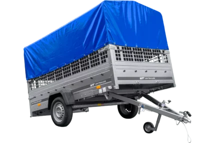 Soyez le premier à laisser votre avis sur “200×106 Mesh-Anhänger mit blauer Flachplane, Mesh-Seiten und Stützrad – Gartenanhänger 200 KIPP”