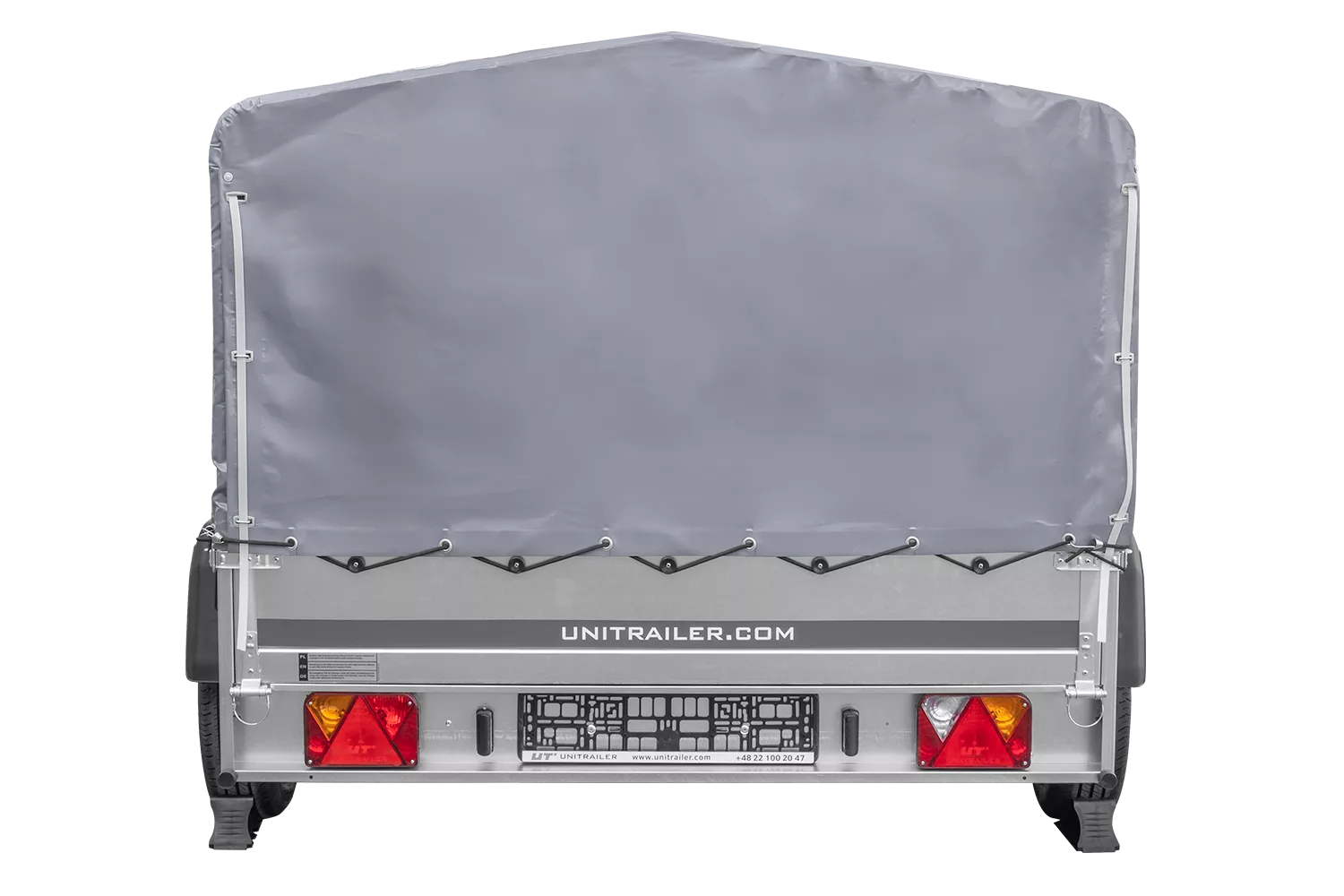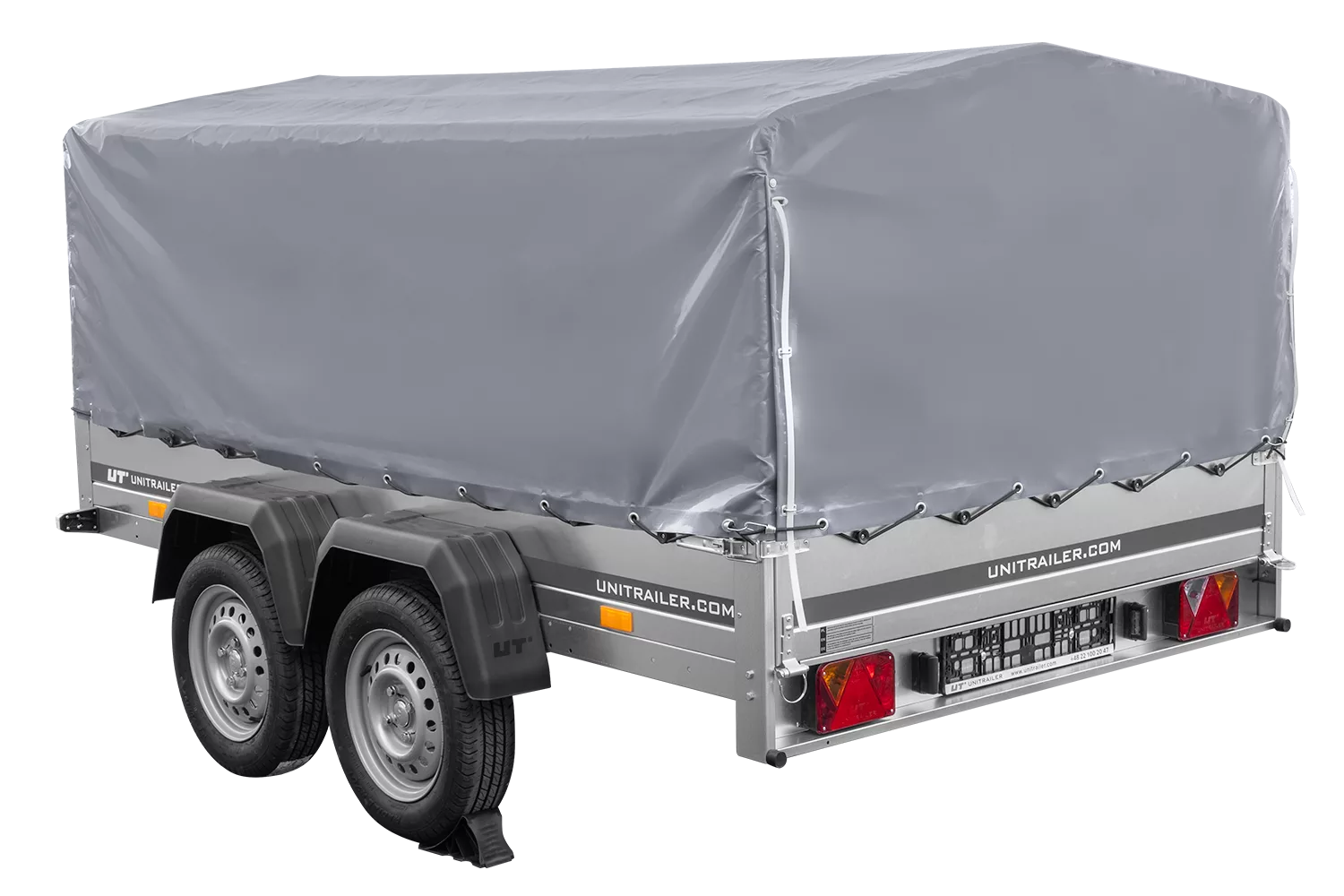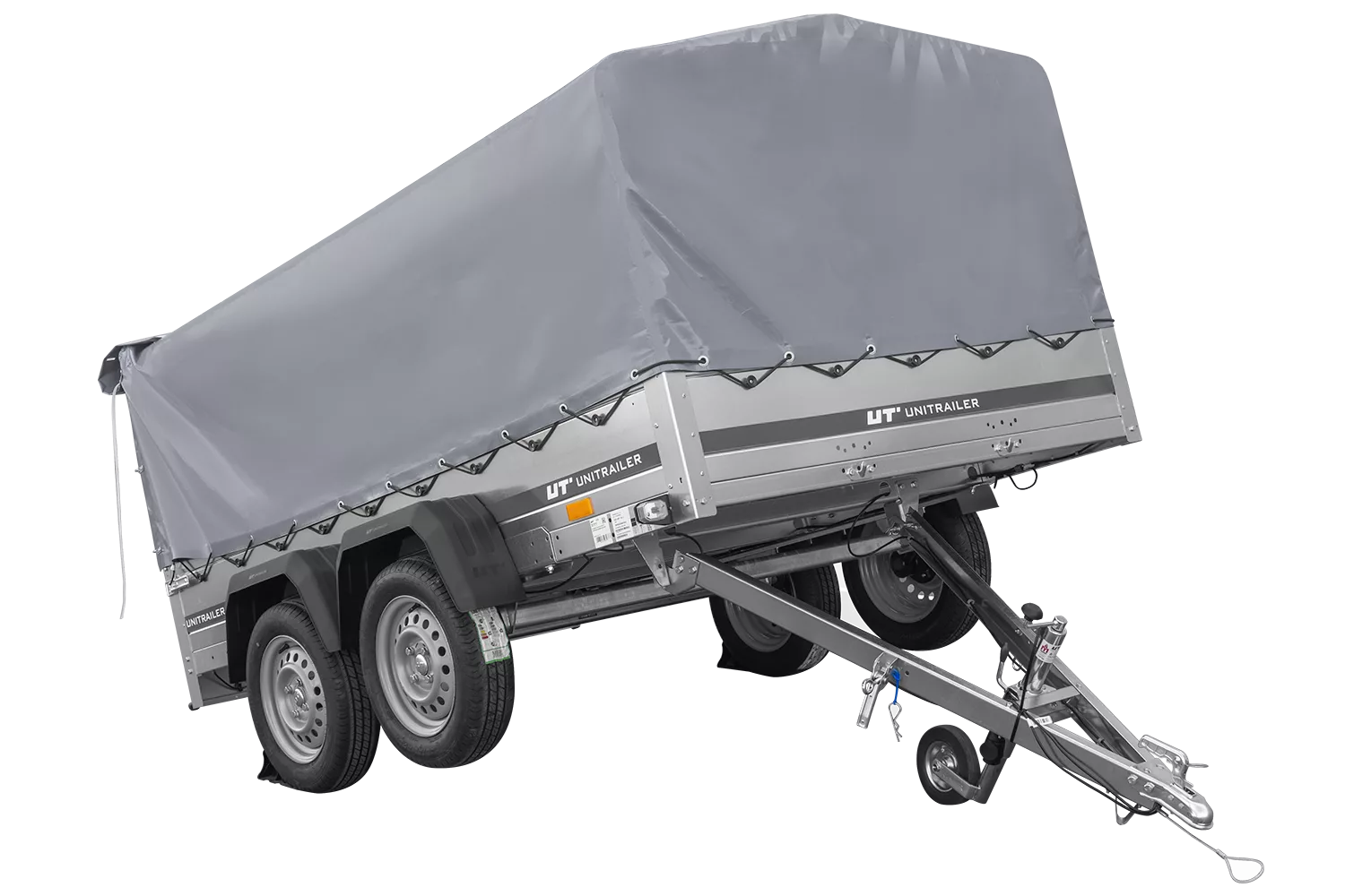 264×150 UNITRAILER GARDEN 265/2 KIPP Zweiachsanhänger mit H-800-Fahrgestell und grauer Plane