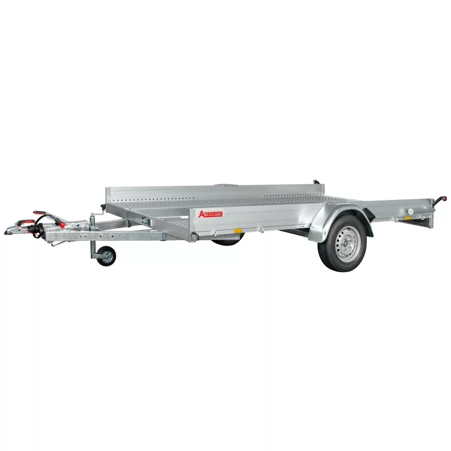 Autotransporter AMT Eco 1301 Anssems Zulässiges Gesamtgewicht (GVW) 1300 kg. Leergewicht 270 kg. Nutzlast 1030 kg. Mindestgewicht 950 kg. Maximale Tara 1300 kg. Achsen 1 Achswiderstand 1300 kg. Bremsen Gebremst Felgengröße 13″ Reserverad V-förmige Deichseloption. Stützrad im Lieferumfang enthalten, kippbar, nicht kippbar, Rampengehäuse, Ja, LED-Leuchten, Nein, Radposition, Außen, Nutzlänge 4000 mm. Nutzbreite 1880 mm. Bordwände Option Unterlegkeil Option Länge der Rampen 2400 mm. Windenoption Nutzhöhe 180 mm.