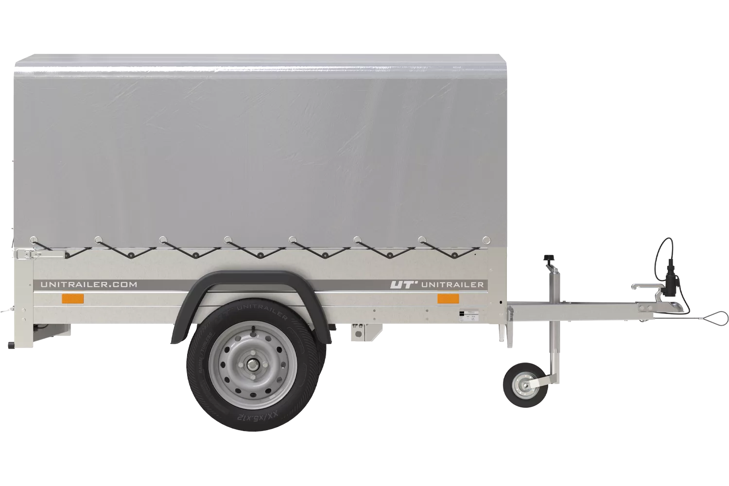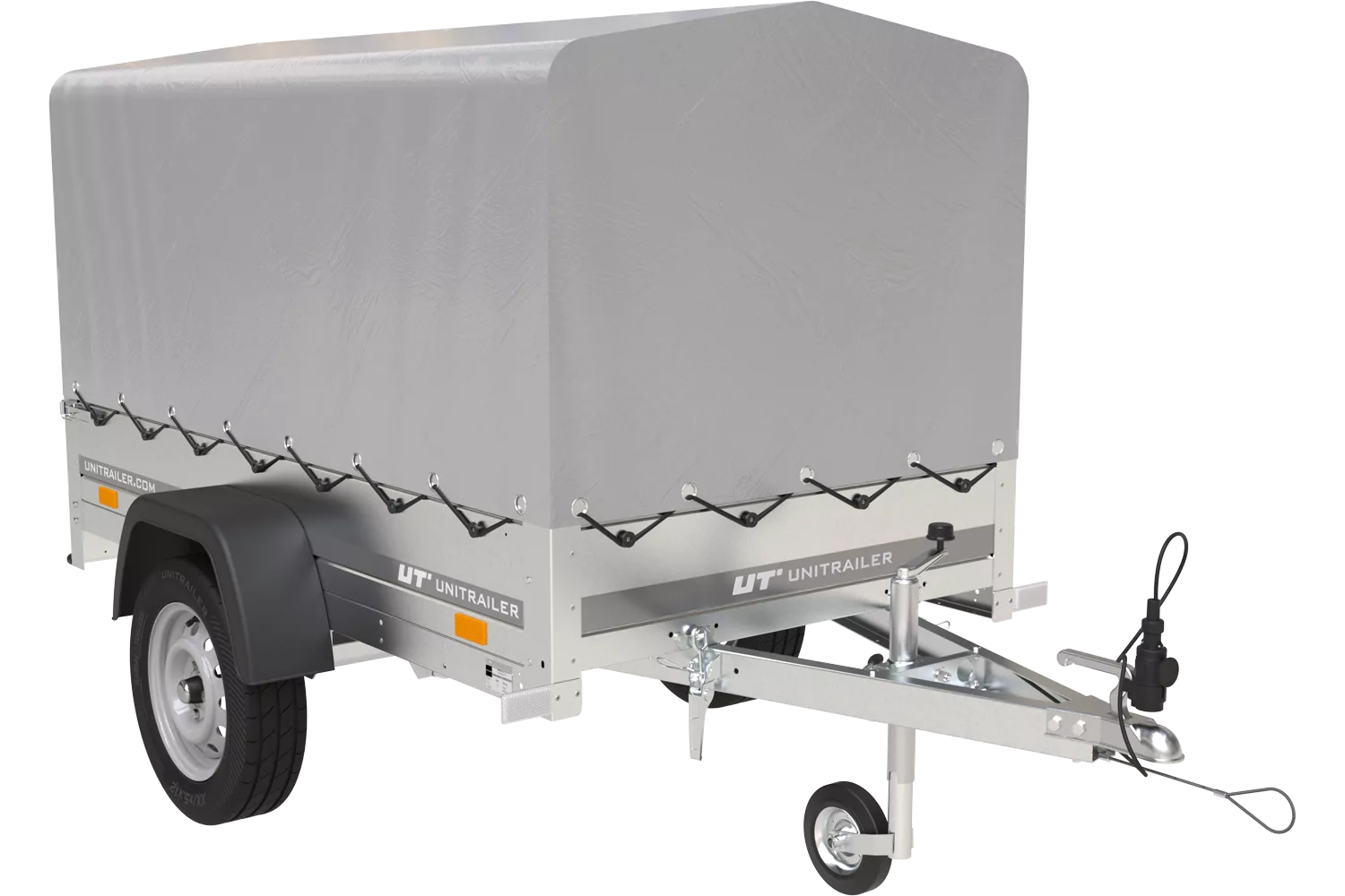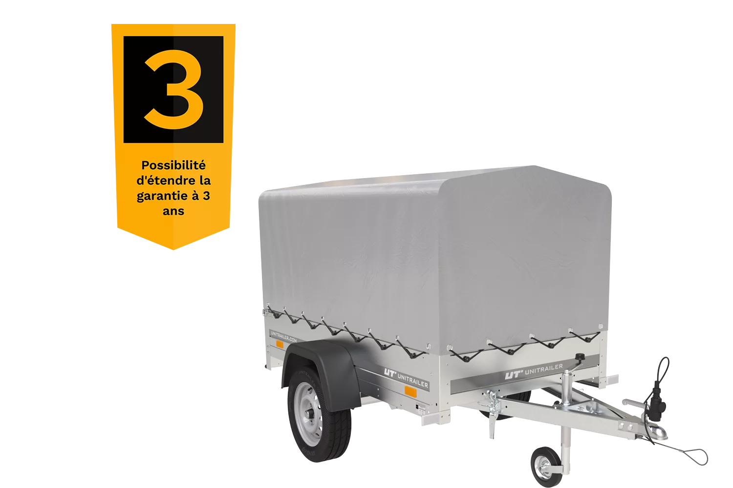 Remorque 750 kg basculante avec bâche haute Garden Trailer 201 KIPP Remorque 750 kg (PTAC maximum) Garden Trailer 201 KIPP, version avec une bâche haute de 80 cm permet de transporter jusqu’à 626 kg de la cargaison (avec le PTAC de 750 kg) sur le plancher de 200×125 cm et avec les ridelles de 30 cm . Expédition dans 24 h à votre domicile avec tous les documents pour l’immatriculation de la remorque Remorque légère 750 kg sera livrée chez vous déjà montée sur une palette. Il suffit de dévisser la ridelle arrière de la palette et de monter l’arceau et la bâche. Vous recevez tous les documents exigés pour l’immatriculation de la remorque 750 kg. Attention! Le PTAC par défaut est de 500 kg en France (750 kg en Belgique). Pour avoir le PTAC de 750 kg, veuillez bien l’indiquer lors de la commande. La remorque légère avec le PTAC de 500 kg maximum ne doit pas être immatriculé en France. Au-dessus de 750 kg, vous devez l’immatriculer – nous vous fournissons tous les documents nécessaires pour le faire ! N’oubliez pas de souscrire une assurance remorque obligatoire pour les remorques immatriculées. Nos remorques sont composées des pièces des meilleurs fabricants , ce qui les rend très durables. La remorque 750 kg est homologuée et possède une garantie de 2 ans – tout pour votre sécurité et sûreté ! Avantages de la remorque Garden Trailer 201 KIPP d’UNITRAILER expédition rapide et livraison à votre domicile ou entreprise plus durable que les remorques standards disponibles sur le marché, grâce à des traverses accessoires ensemble des documents pour immatriculer la remorque large gamme des accessoires conçus spécialement pour nos remorques, p.ex. les rehausses, les bâches plates, etc. 2 ans de la garantie fabricant Nous sommes experts en matière des remorques légères – n’hésitez pas à nous contacter pour des conseils à propos du produit, de l’immatriculation ou de l’utilisation de notre remorque. En achetant dans notre Boutique, vous recevrez une remorque de qualité et multifonction, avec une excellente tenue de route. Remorque légère mais à grande capacité. Parfaite pour le bricolage, jardinage et les activités de votre entreprise. Le transport des meubles, appareils électroménagers, matériel du jardin ou bricolage, ainsi que palettes ne sera plus un problème. Grâce à la remorque Garden Trailer 201 KIPP avec une bâche haute, vous pourrez transporter des différentes cargaisons sans vous soucier des conditions atmosphériques tels que la pluie, le neige ou le soleil brûlant. Les produits cachés sous la bâche seront protégés contre les dommages et vous ne devrez pas vérifier la météo avant chaque trajet. L’espace de transport la plus large disponible dans notre Boutique vous permettra de transporter même plus d’articles – articles avec les dimensions plus grandes qu’avant. La ridelle arrière ouvrable et aisément démontable facilite considérablement le chargement et déchargement des cargaisons mais aussi permet de transporter des articles plus longs que 2 mètres. En achetant ce modèle de la remorque, vous recevez ainsi un outil de transport universel qui peut comporter des différentes cargaisons. Pourquoi est-ce que la remorque Garden Trailer 201 KIPP est exceptionnelle ? plancher plus large que dans d’autres remorques légères – 125 cm la fonction basculante de la remorque pour assurer un chargement et déchargement plus facile le stockage vertical avec le timon plié – économie d’espace dans votre garage ou à côté de votre maison des traverses supplémentaires qui rendent la remorque plus durable roues sur les côtés de l’espace de transport , ce qui résulte en un centre de gravité plus bas, une meilleure conduite et tenue de route, même sans cargaison garde-boues en plastique – durables, sans rouille, qui donnent une apparence moderne à la remorque démontage rapide et facile de la ridelle arrière feux arrières cachés dans la ridelle pour les protéger contre les dommages une large gamme des accessoires et pièces détachées facilement disponibles livraison directement à l’adresse indiquée, sans quitter votre domicile – expédition dans 24 h et livraison en une semaine Spécifications techniques de la remorque 750 kg Garden Trailer 201 KIPP CHÂSSIS – essieu de nouvelle génération , fabriqué par un producteur renommé AL-KO ou KNOTT , avec des barres de torsion en caoutchouc , qui assure des bonnes conditions de conduite. Timon pliable en V , avec un boîtier d’attache équipé d’un témoin d’attelage correct . Roues toutes saisons 155/70 en 13 pouces amortissent les bosses et permettent de rouler en confort. Le cadre de la remorque et fait en profilé acier galvanisé et vissé. CARROSSERIE – plancher en contreplaqué étanche et antidérapant de qualité de 9 mm d’épaisseur. RIDELLES – hauteur 30 cm , faites en tôle acier galvanisé durable, anti-corrosion . Tôle profilée pour une meilleure rigidité. Ridelles avec les attaches bâche montées qui permettent de tendre la bâche correctement. La ridelle arrière peut être ouverte ou complétement démontée. Le PTAC par défaut est de 500 kg en France et 750 en Belgique. N’oubliez pas de fournir le PTAC désiré lors de la commande en ajoutant une note dans la section déstinée aux commentaires. Les PTAC possibles : 300 kg, 350 kg, 400 kg, 450 kg, 499 kg, 500 kg, 525 kg, 550 kg, 575 kg, 600 kg, 625 kg, 650 kg, 675 kg, 700 kg, 725 kg, 750 kg. Si vous avez des questions ou des doutes lors de l’utilisation de la remorque, – vous pouvez toujours contacter nos spécialistes. Ils se feront un plaisir de vous fournir toutes les informations et de tout vous expliquer. Description Fabricant UNITRAILER Code du produit UT004183 EAN 5907648369498 Modèle Garden Trailer 201 Kipp PTAC max. 750 kg Longueur du compartiment de charge 2006 mm Largeur de la surface de chargement 1256 mm Roues 15