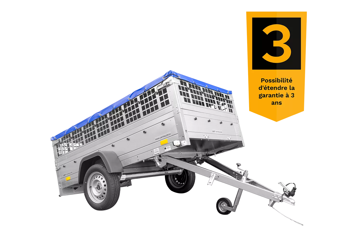 Remorque sans frein Garden Trailer 230 KIPP Grande remorque à benne basculante avec bâche plate bleue, rehausses de ridelles grillagées et roue jockey du modèle Garden Trailer 230 KIPP. Grâce à la grande surface de transport de 230×125 cm, la remorque vous permettra de transporter de lourdes charges ou d’objets de grandes dimensions qui ne seraient normalement pas transportables dans votre voiture. En outre, le PTAC maximal de 750 kg permet à chaque conducteur de fixer la remorque au crochet. La bâche haute avec arceau et rehausses de ridelles grillagées offrent une protection supplémentaire pour les marchandises transportées. En utilisant l’essieu directeur moderne de la marque AL-KO ou KNOTT, nous garantissons qu’aucun trou sur la route ne va poser de problèmes, même lorsque vous voyagez avec une surface de transport déchargée. Avec notre grande remorque à benne basculante du modèle Garden Trailer 230 KIPP, le transport de vos biens sera toujours confortable et sécuritaire. Livrée directement à votre domicile avec tous les documents nécessaires ! Notre grande remorque à benne basculante est livrée directement à votre maison. Vous n’avez pas à vous inquiéter de devoir monter la remorque, parce que l a remorque est entièrement assemblée par nous et prête à être utilisée dès l’instant où vous la recevez. En outre, l a remorque est fournie avec tous les documents nécessaires comme la facture TVA, certificat d’autorisation et homologation. Les remorques UNITRAILER se caractérisent par une très grande durabilité avec un service de garantie de 2 ans dont vous pouvez profiter dans plus de 150 sites dans l’ensemble de l’Europe. Quels sont les avantages de notre grande remorque à benne basculante avec rehausses de ridelles grillagées ? Mis à part le fait que vous gagnez une surface de transport exceptionnellement grande, nous offrons aussi des rehausses de ridelles grillagées avec bâche plate dans l’ensemble qui protégeront votre cargaison contre toutes les influences atmosphériques. La roue jockey (aussi incluse dans l’ensemble) permet de mieux manœuvrer la remorque détachée du crochet. Le timon pliable vous donne la possibilité de basculer la remorque de telle manière que vous soyez capable de charger et décharger votre remorque beaucoup plus rapide que d’habitude. Cette solution n’est disponible que dans les remorques plus avancées, qui coûtent souvent beaucoup plus cher que notre remorque en question. Elle sera, avant tout, parfaite pour des réparations, transport des meubles, du bois, des matériaux de construction, des outils et toutes les autres choses que vous aviez transportées dans votre voiture jusqu’à présent. En utilisant les rehausses de ridelles supplémentaires et une bâche plate, vous obtenez jusqu’à 70 cm de hauteur de la surface de transport. Vous pouvez également monter des supports latéraux, dispositifs de fixation sur le plancher, un filet de fixation de charge ou acheter une roue de secours ou des cales de roue. Vous adapterez votre remorque à vos besoins de manière très facile. Vous vous demandez où garder votre remorque lorsque vous le déconnecter du crochet ? Vous n’avez pas besoin de posséder un garage ! Grâce au fait que nos remorques disposent d’un timon pliable, vous pouvez la placer sur la ridelle arrière n’importe où ou l’appuyer sur votre maison sans se soucier des dommages. Spécifications de notre grande remorque Garden Trailer 230 KIPP CHÂSSIS – nouvel essieu simple de la marque reconnue AL-KO ou KNOTT avec suspension indépendante basée sur la barre de torsion qui offre de très bonnes conditions de conduite. Timon rabattable en V avec anneau d’amarrage de la marque WINTERHOFF avec témoin d’accrochage et câble de rupture en acier. Roues 155/70 R13 toutes saisons qui amortissent des routes inégales et permettent une conduite confortable. Cache profilé en tôle d’acier, galvanisé à chaud et boulonné – très durable CAISSE – p lancher en contreplaqué marine antidérapante (9 mm d’épaisseur). RIDELLES – hauteur totale de 70 cm (30 cm de ridelles de base et 40 cm de ridelles additionnelles) , fabriqué en tôle d’acier galvanisé avec protection anticorrosion et ondulée pour une plus grande rigidité. Ridelles avec dispositifs de fixation qui permettent l’étirement approprié de la bâche. Ridelle arrière ouvrable qui est en même temps complètement démontable. Lorsque vous commandez notre remorque pliable, veuillez indiquer le PTAC assorti à votre voiture ! Après avoir navigué jusqu’au panier, d ans la section « ajoutez un commentaire », veuillez indiquer cette valeur correspondante à votre voiture. PTAC possibles : 300 kg, 350 kg, 400 kg, 450 kg, 499 kg, 500 kg, 525 kg, 550 kg, 575 kg, 600 kg, 625 kg, 650 kg, 675 kg, 700 kg, 725 kg, 750 kg. Si vous avez des questions ou des doutes lors de l’utilisation de la remorque, – vous pouvez toujours contacter nos spécialistes. Ils se feront un plaisir de vous fournir toutes les informations et de tout vous expliquer. Description Fabricant UNITRAILER Code du produit UT004479 EAN 5907648361157 Modèle Garden Trailer 230 Kipp PTAC min. 300 kg PTAC max. 750 kg Longueur du compartiment de charge 2304 mm Largeur de la surface de chargement 1256 mm Roues 155/70 R13 Roue de secours avec support en option Où se trouvent les roues à l’extérieur du compartiment de charge Type de suspension un essieu non-freiné 750 kg Nombre d’essieux 1 Ridelles en acier Freiné non-freiné Hauteur de la ridelle 300 mm Type de surface de transport plancher en contreplaqué Basculante oui Usage déménagements / transport de meubles transport de marchandises dans l’entreprise Poids de la remorque 129 kg Capacité maximale 620 kg Type de prise 7 broches Il est possible d’utilisation d’un adaptateur 13/7 broches