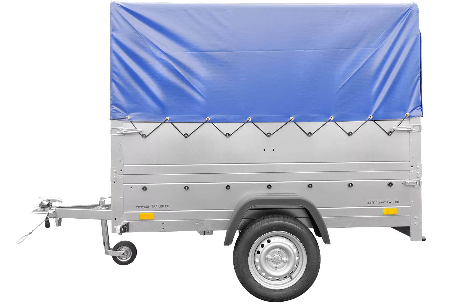 Einachsanhänger 200×125 mit Hochplane, Spriegel, Bordwänden und Stützrad – Gartenanhänger 201 KIPP
