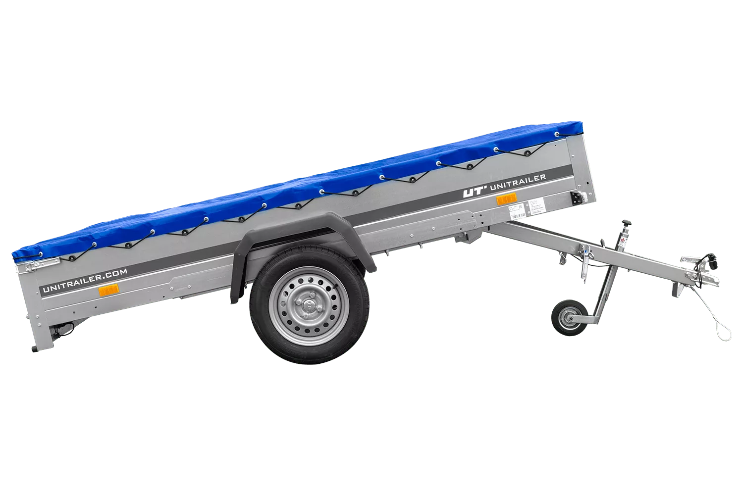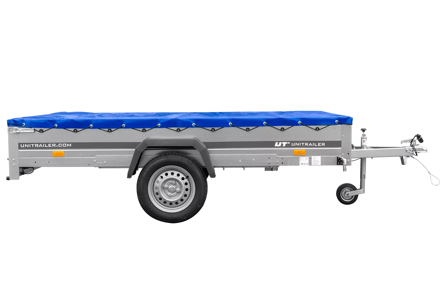 Einachsanhänger 264×150 UNITRAILER GARDEN 265 KIPP mit H-0-Fahrgestell und blauer Plane