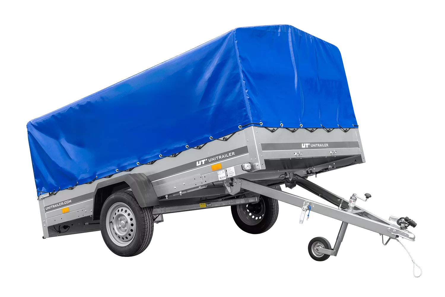 Einachsanhänger 264×150 UNITRAILER GARDEN 265 KIPP mit H-800-Reifen und blauer Plane