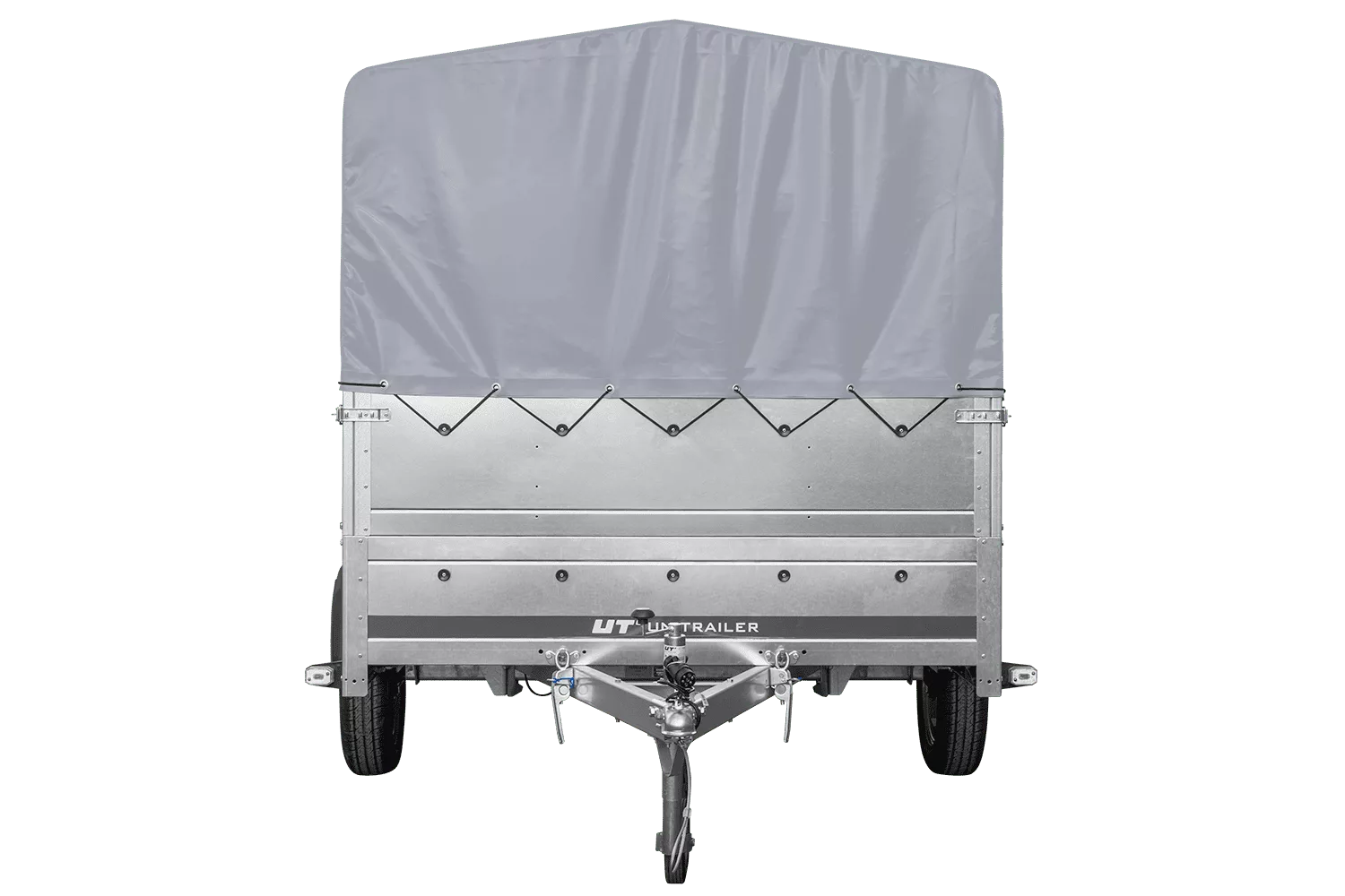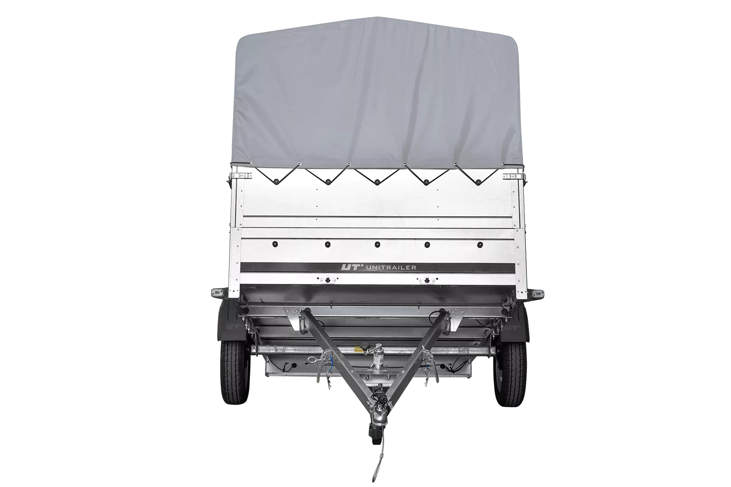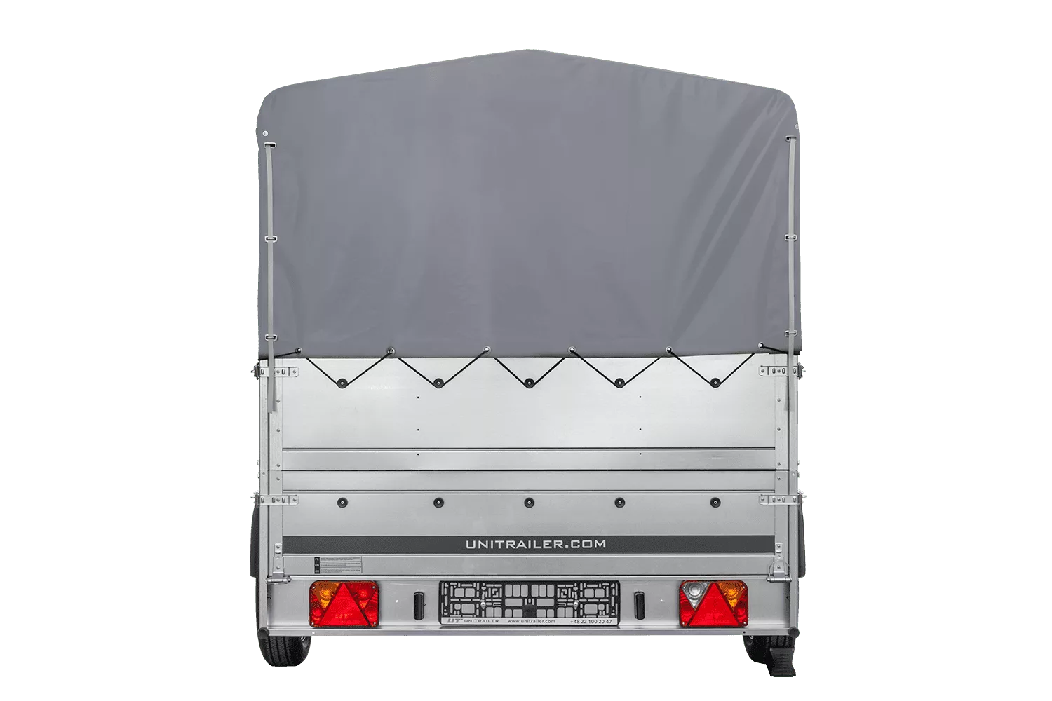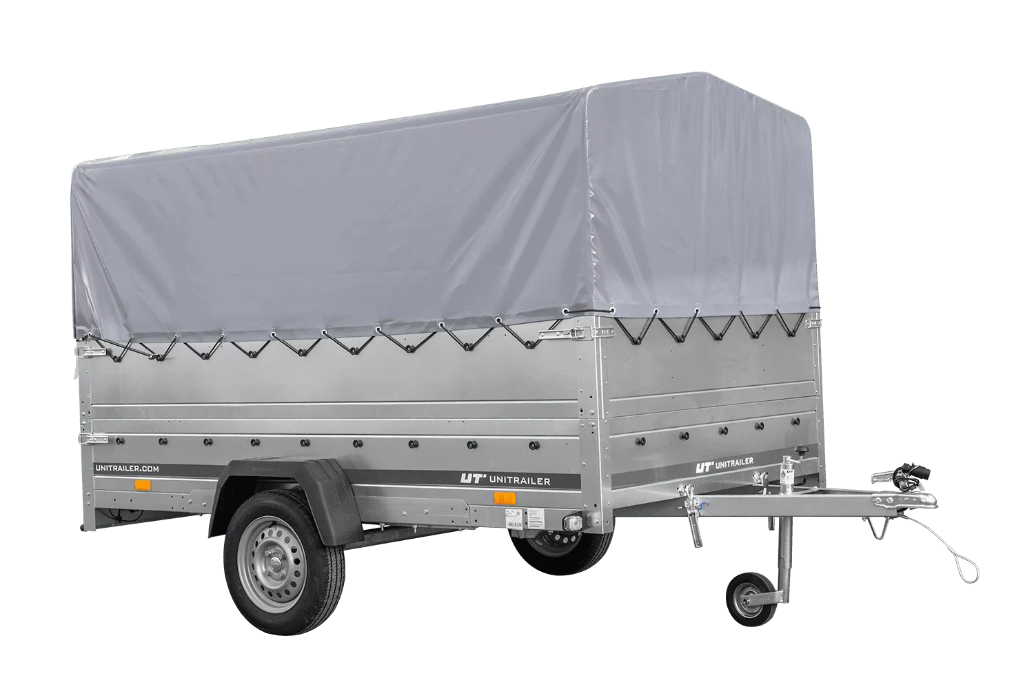 Einachsanhänger 264×150 UNITRAILER GARDEN 265 KIPP mit zusätzlichen Bordwänden, H-800-Reifen und grauer Plane