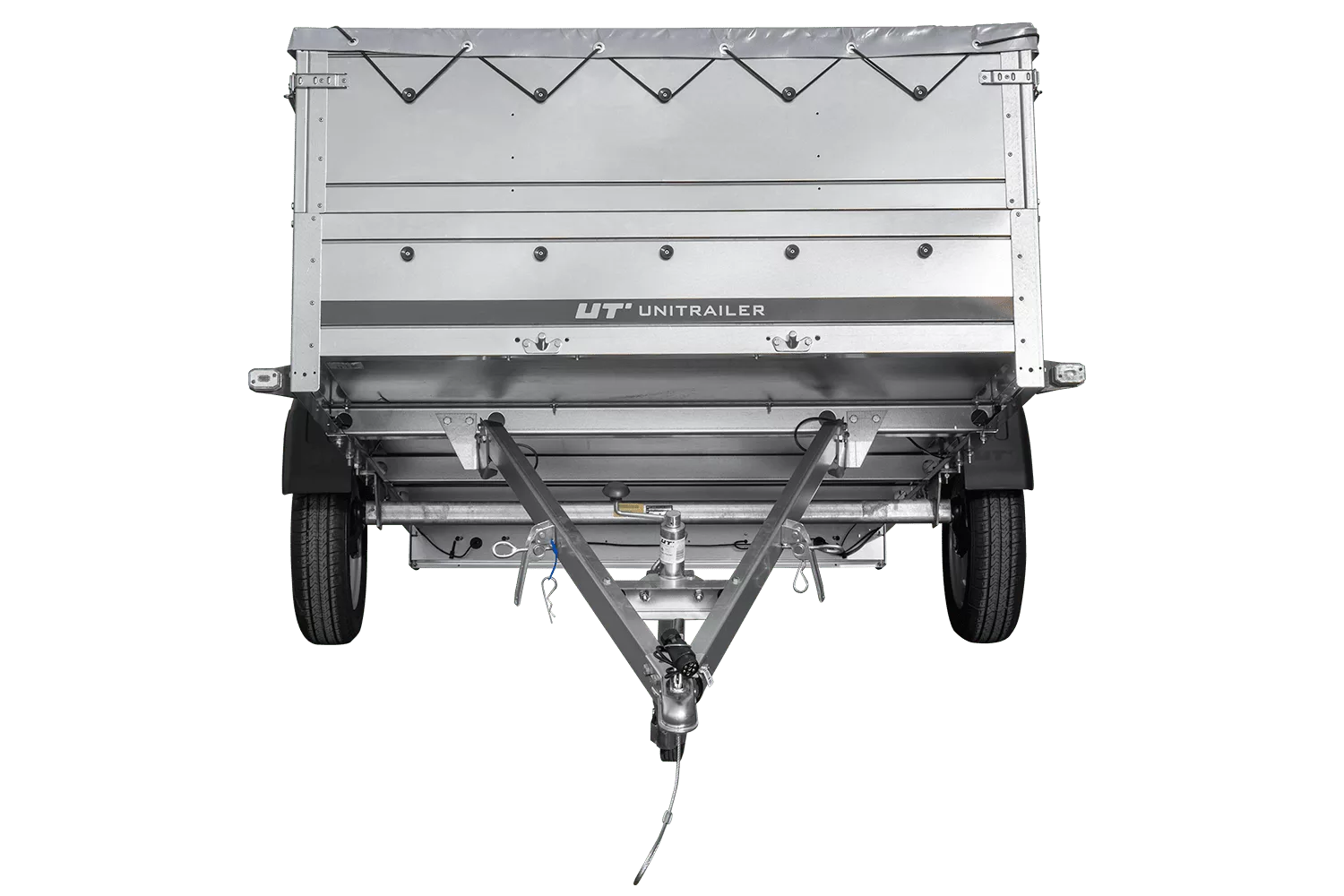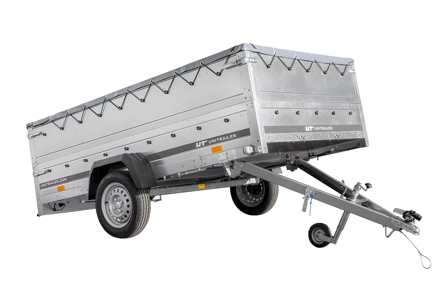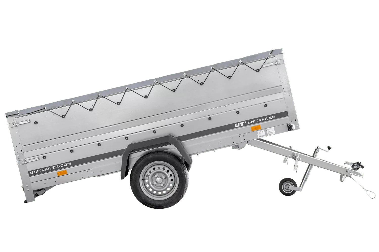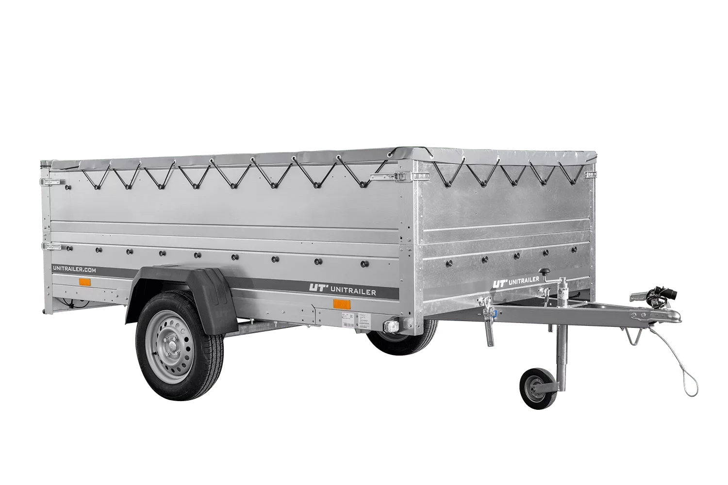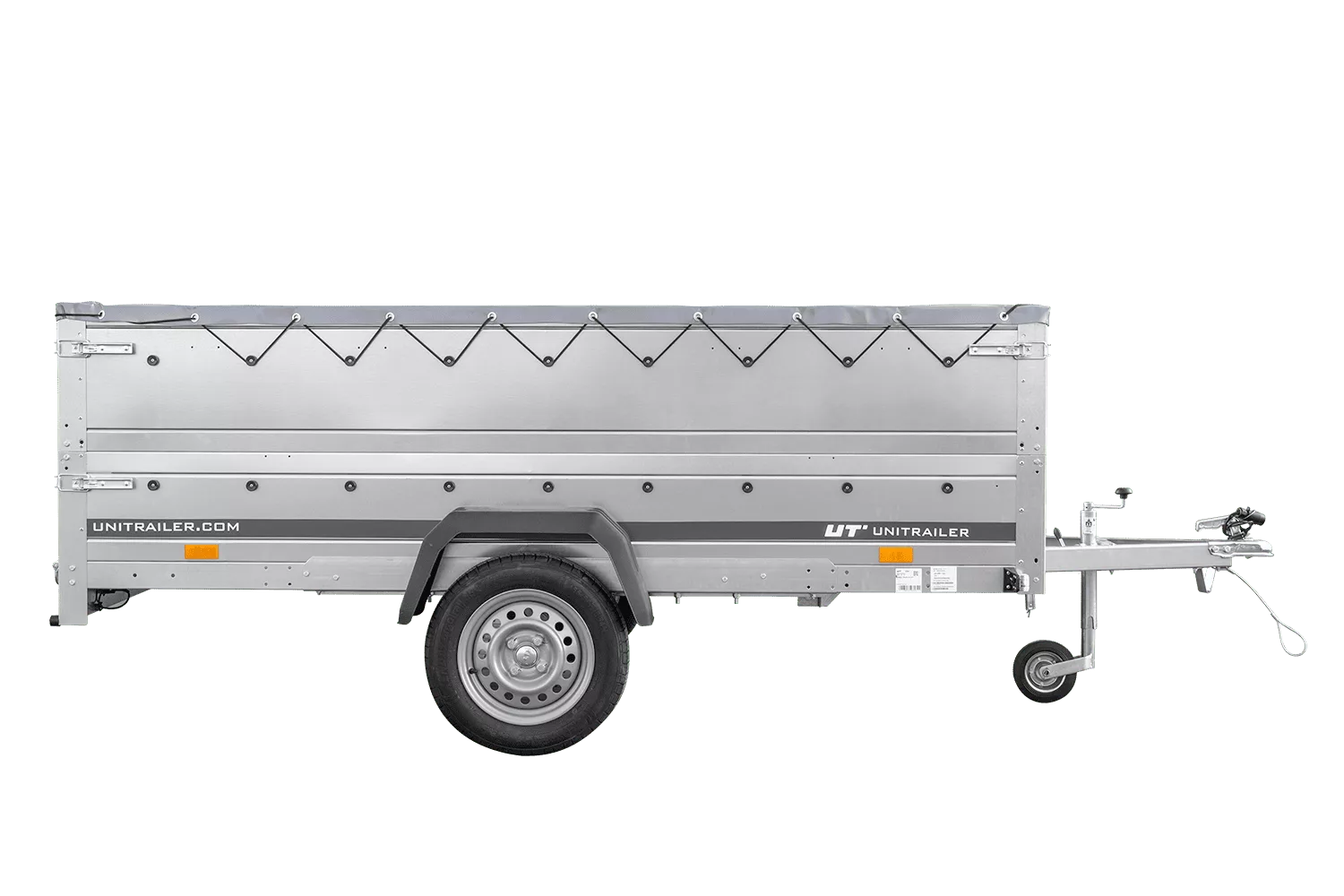 Pkw-Anhänger 264×150 UNITRAILER GARDEN 265 KIPP mit BIS-Bordwänden, H-0-Rahmen und grauer Plane