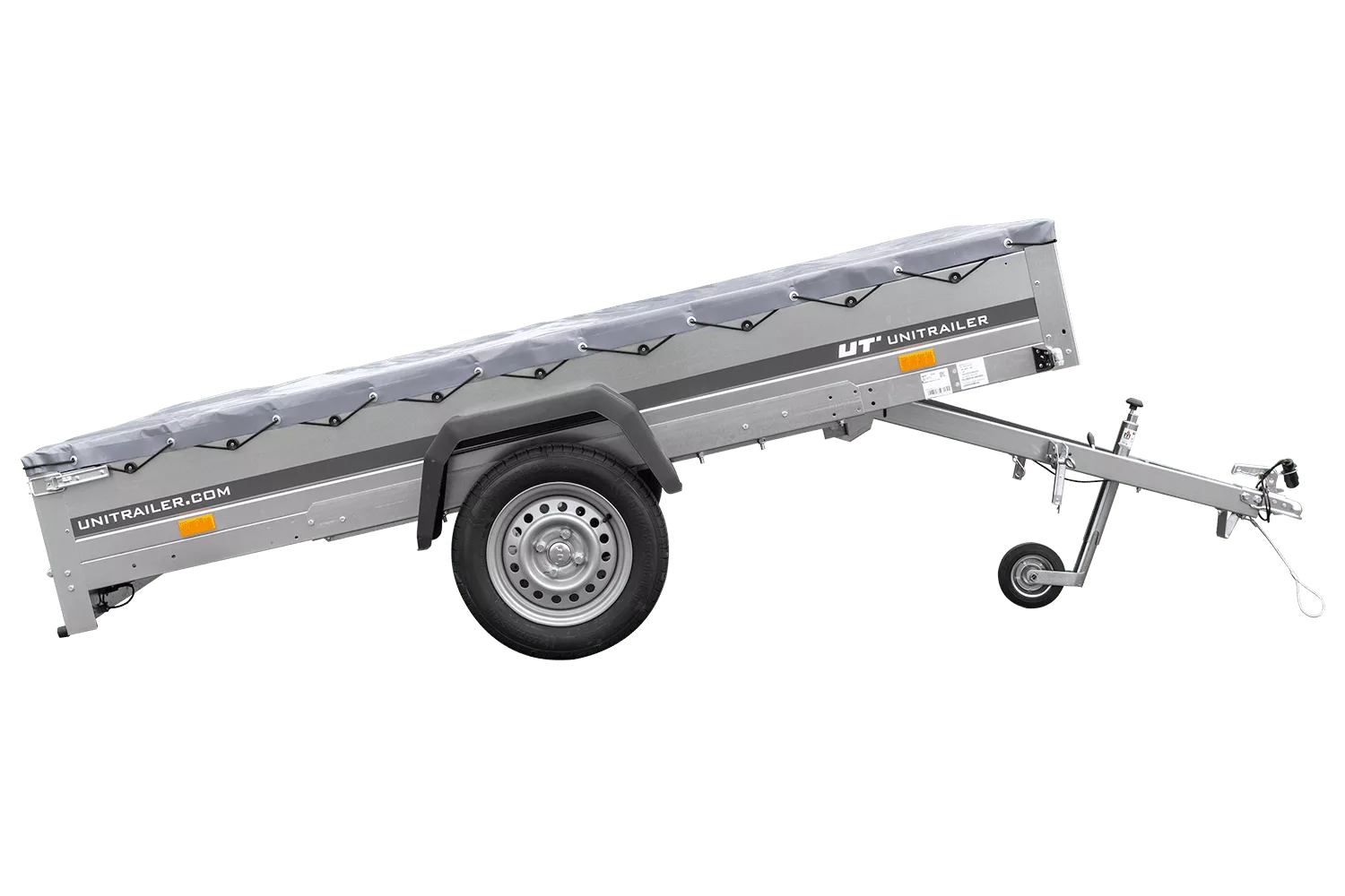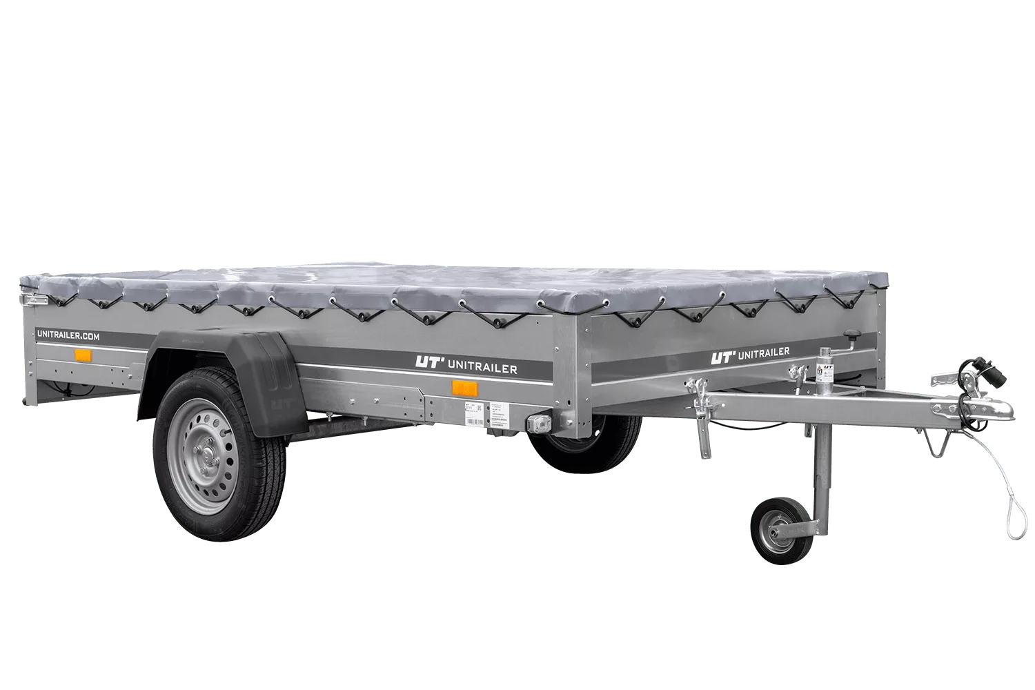 Pkw-Anhänger 264×150 UNITRAILER GARDEN 265 KIPP mit H-0-Fahrgestell und grauer Plane