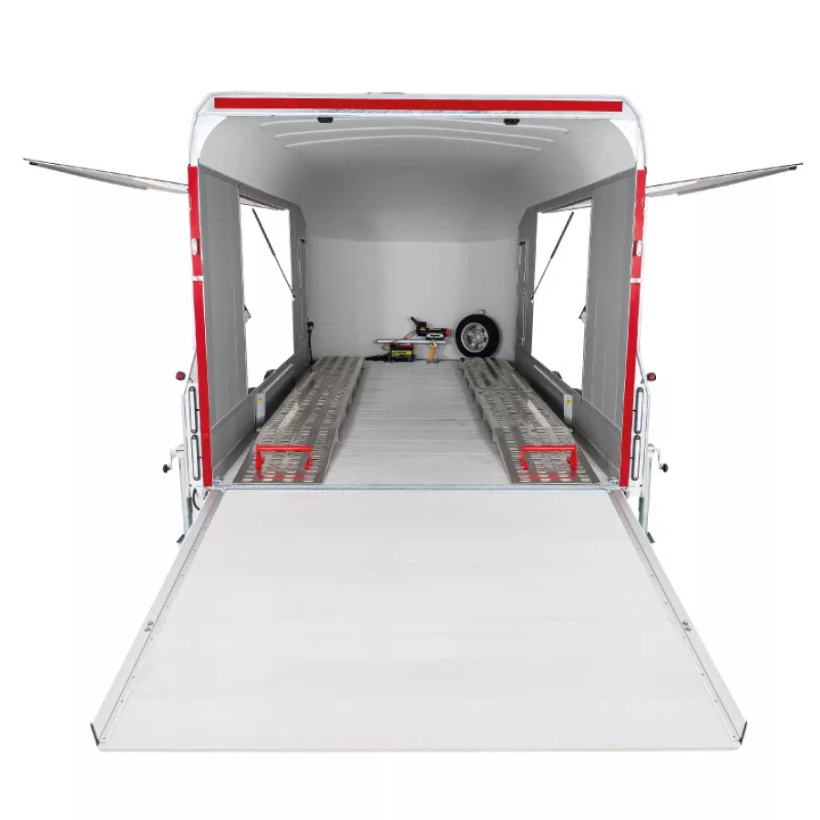 Zulässiges Gesamtladegewicht (GVWR) 3500 kg. Leergewicht 1300 kg. Nutzlast 2200 kg. Achsen 2 Bremsen Gebremste V-Deichsel. Stützrad inklusive Position der Außenräder Gesamtinnenbreite 2200 mm. Gesamtinnenhöhe 2045 mm. Gesamtinnenlänge 5500 mm. Seitentür Ja Wandtyp Polyester, eloxiertes Aluminium