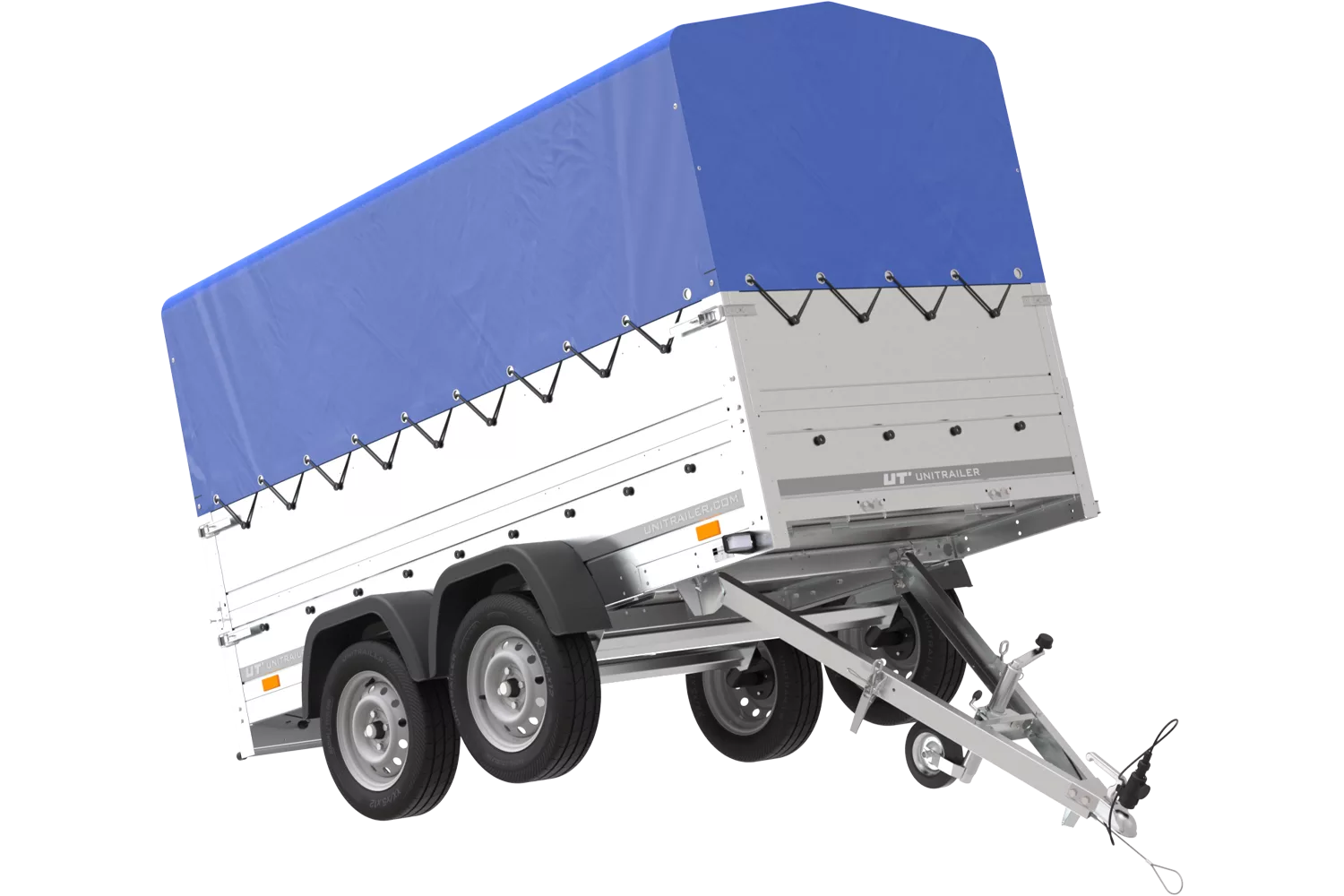 UNITRAILER GARDEN TRAILER 264/2 KIPP zweiachsiger PKW-Anhänger mit Bordwandaufsätzen, Hochplane, Überrollbügel