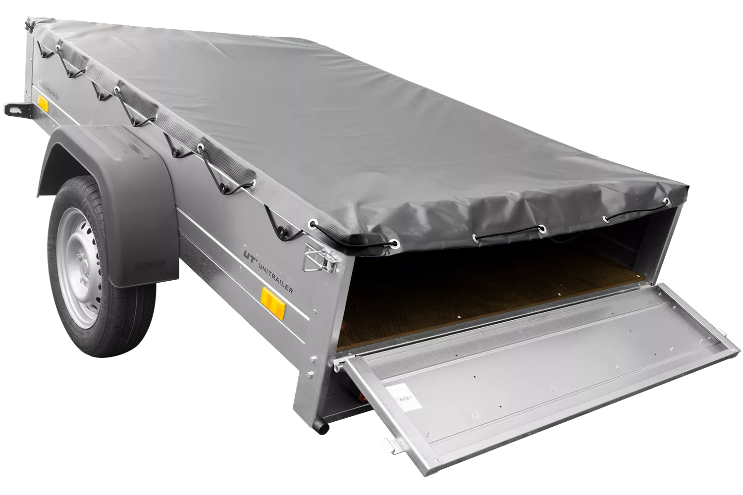 Verzinkter Anhänger zu verkaufen 200×125 cm Gartenanhänger 201 KIPP [mit Stützrad und grauer Flachplane]